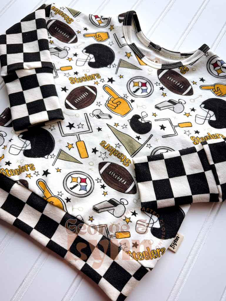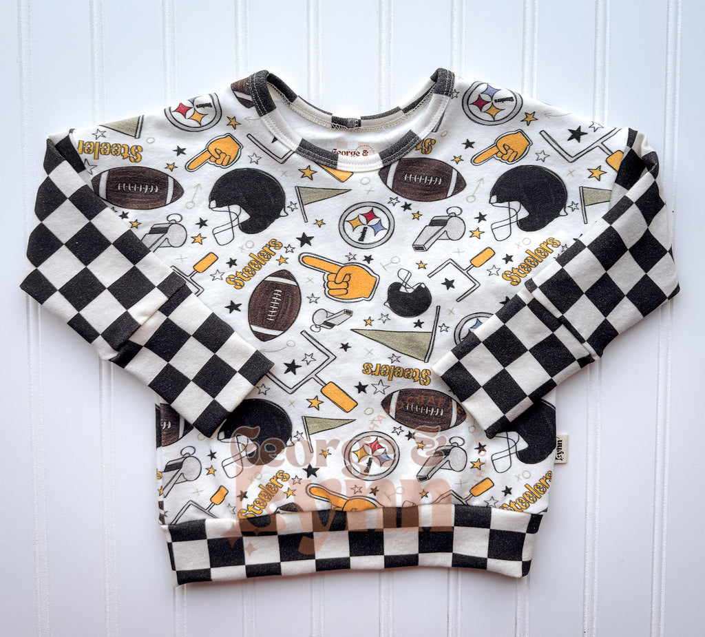 Cheer on your favorite team in style with our Pittsburgh Football Dolman!